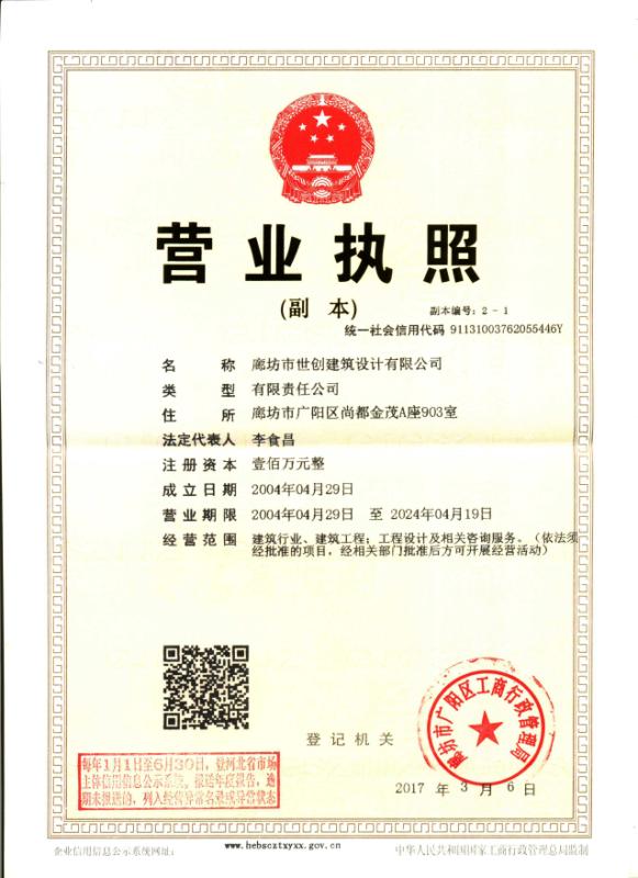 廊坊市世創(chuàng)建筑設計有限公司,原為廊坊市規(guī)劃設計院建筑工程設計所。成立于1997年,多年來本公司在社會各界人士的關(guān)心、支持下,不斷發(fā)展壯大。自2006年3月1日起具有國家建設部核準的建筑工程乙級設計證書,證書編號為:A213006026。企業(yè)法人營業(yè)執(zhí)照,注冊號:131003000011148 我公司自創(chuàng)建以來完成各類工業(yè)與民用建筑設計、咨詢項目共有三百五十多項,建筑面積近三百萬平方米,工程所在地涵蓋廊坊、天津、北京等地區(qū)。并有...